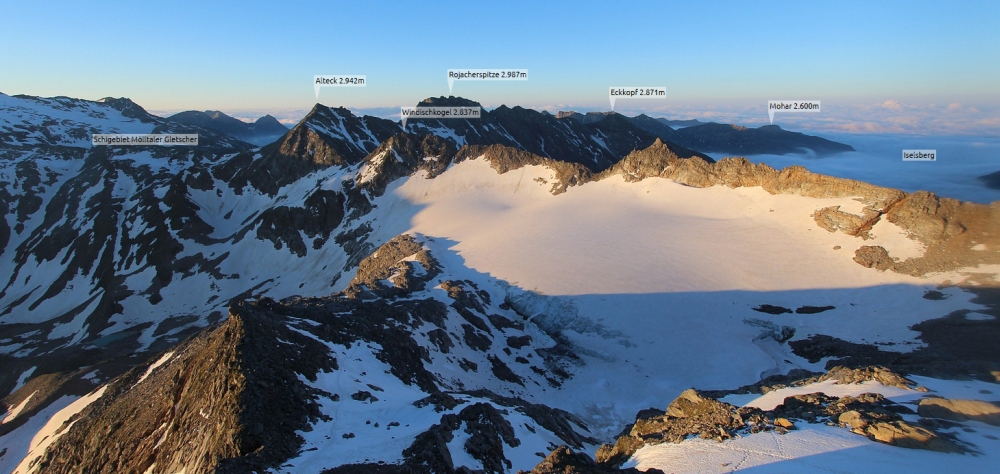 Image from webcam Goldbergkees with annotations of the surrounding.