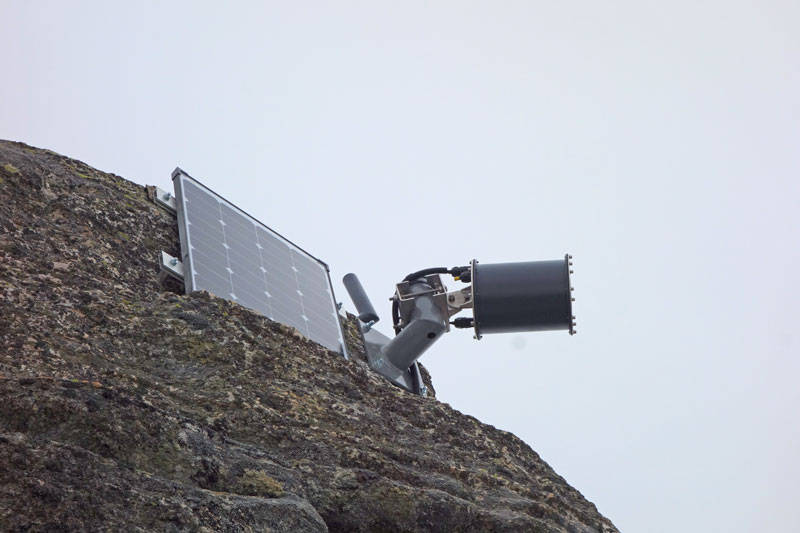 Complete camera system with solar panel and camera in the protection casing (photo: G. Keuschnig).