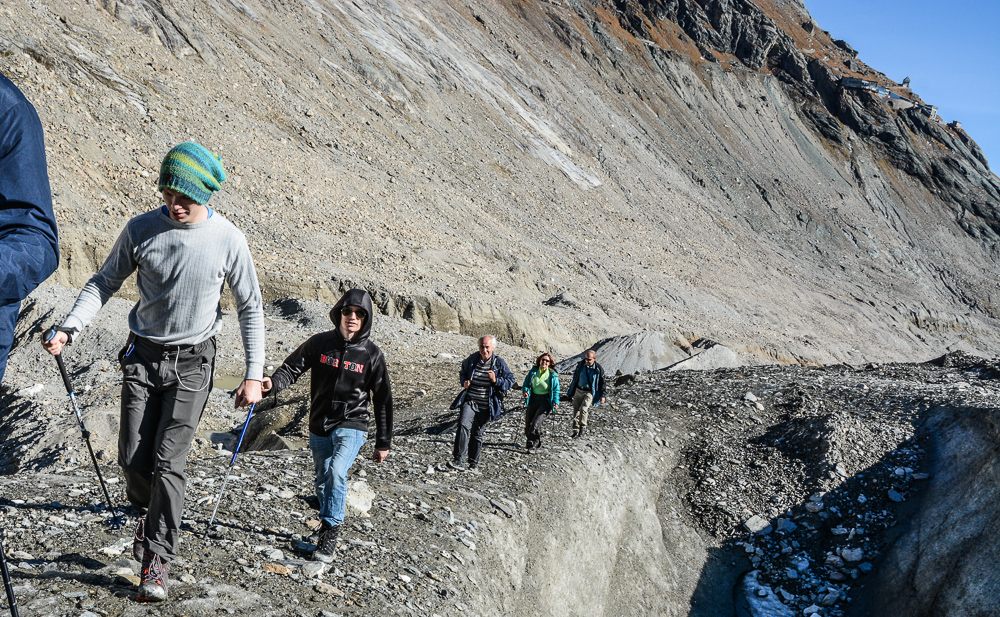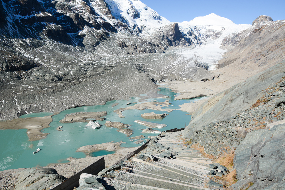 After some attempts in previous years, again we agreed on a date and finally the weather was perfect for a joint field trip to Pasterze in October 2017. We – glaciologists from ZAMG + students and teachers from TGM made a joint field trip to Pasterze to make some experiments on WLAN data transmission in the real world and to get a feeling about the ongoing glacier retreat, and travelling safe and working on a glacier that big as Pasterze.